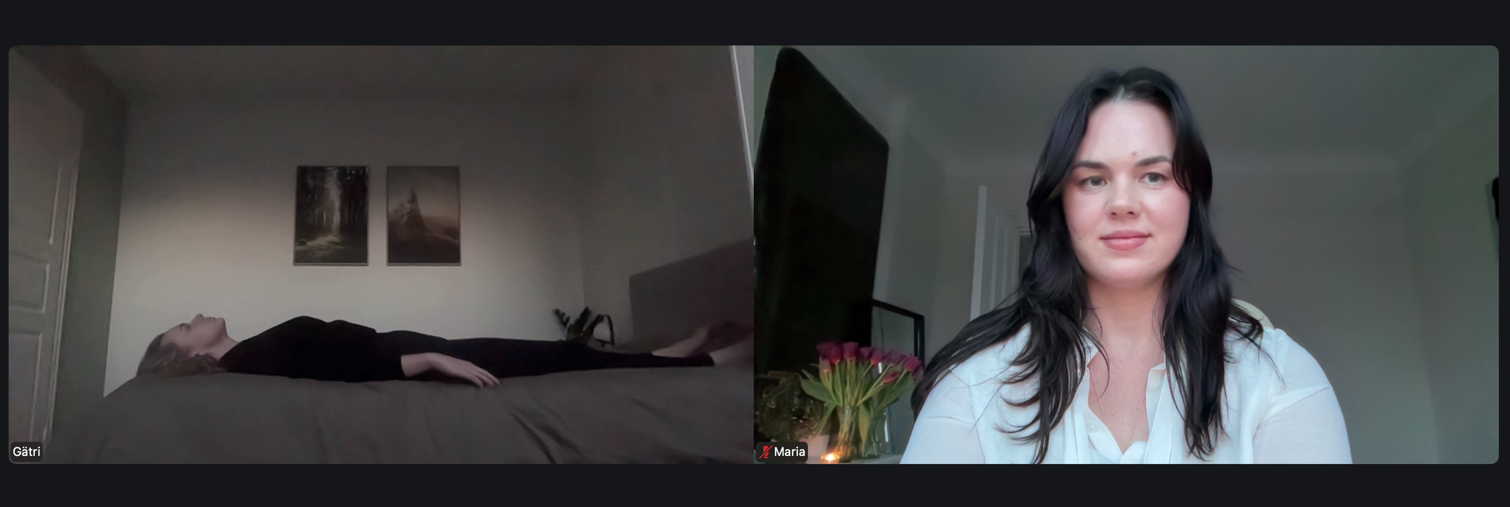 There’s no need to travel anywhere—simply lie down comfortably on your yoga mat or bed, position your camera so you’re visible, and allow the session to begin.